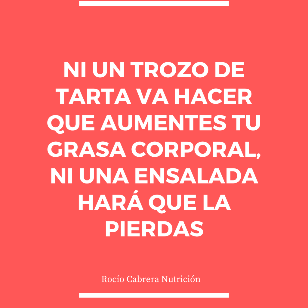 Si tu alimentación es equilibrada, ricas en frutas, verduras, legumbres; si haces actividad física diaria, y no hay consumo de tóxicos como alcohol 🍺 🍷 🚬…..porque te tomes un día un trozo de tarta 🍰 no vas a perder todo lo que has conseguido hasta ahora.